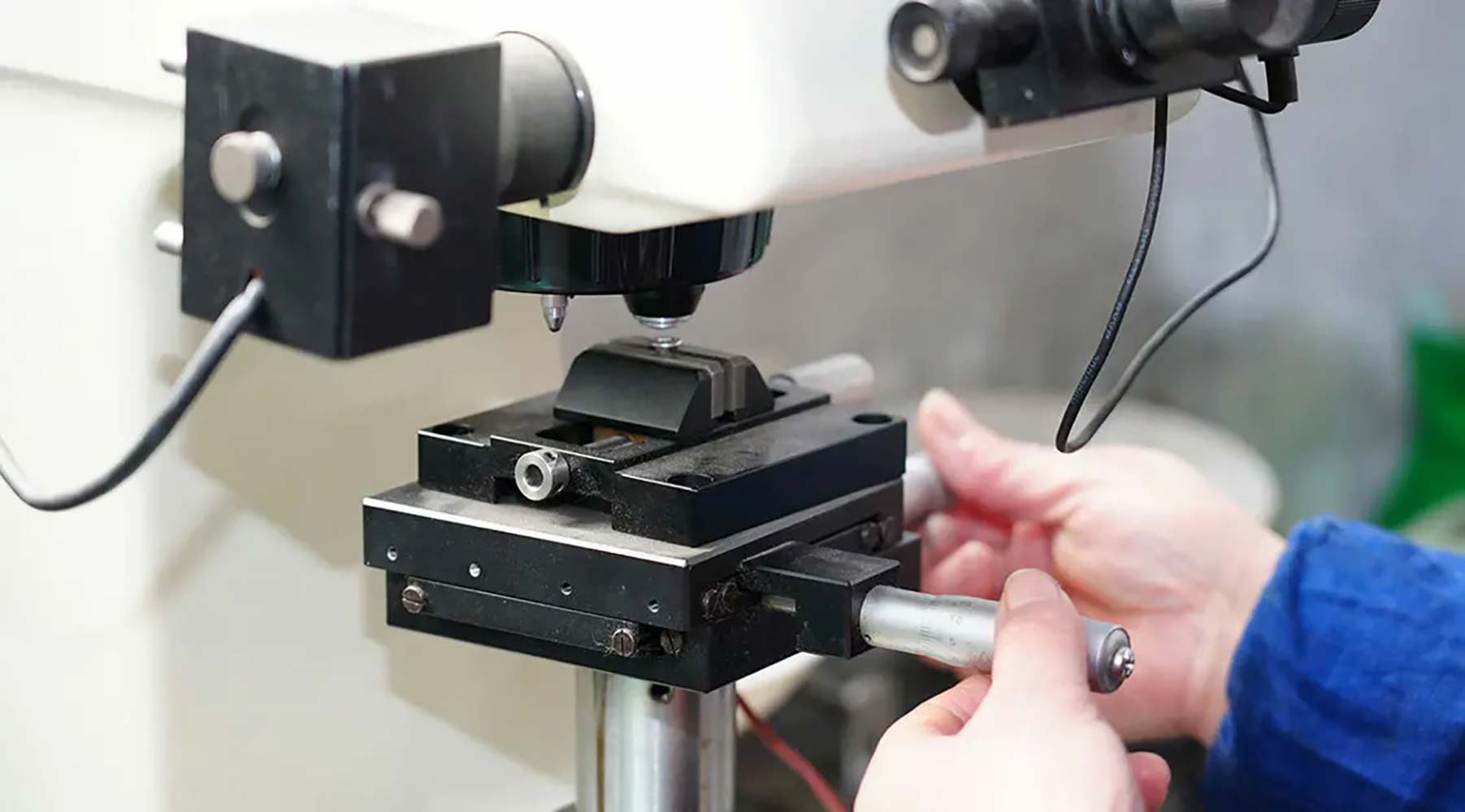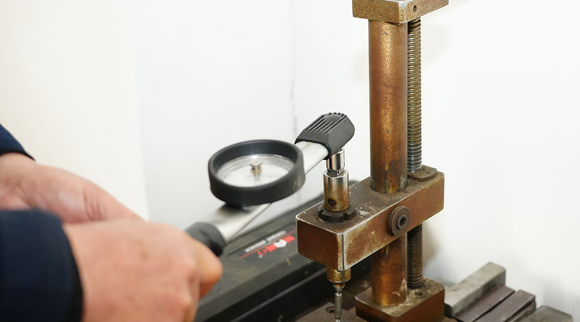 เครื่องทดสอบความแข็ง    เครื่องทดสอบความแข็งจะตรวจจับความแข็งของวัสดุสกรูและผลของการบำบัดความร้อน เพื่อให้มั่นใจว่าประสิทธิภาพเป็นไปตามมาตรฐานและปรับกระบวนการผลิตให้เหมาะสม ในขณะเดียวกัน จะตรวจสอบความสม่ำเสมอของแบทช์ ป้องกันความเสี่ยงที่จะเกิดความล้มเหลว และตรวจสอบความแข็งและการแข็งตัวของพื้นผิวของชิ้นส่วนสำคัญ เช่น เกลียวอย่างแม่นยำ เพื่อให้แน่ใจว่าผลิตภัณฑ์เป็นไปตามมาตรฐานสากล และปรับปรุงความน่าเชื่อถือและความสามารถในการแข่งขันในตลาดของสกรู