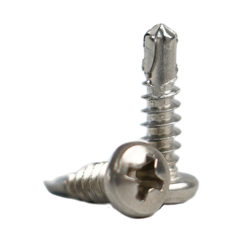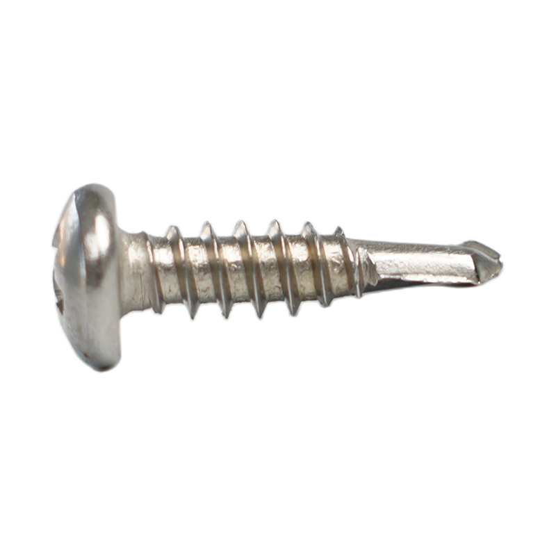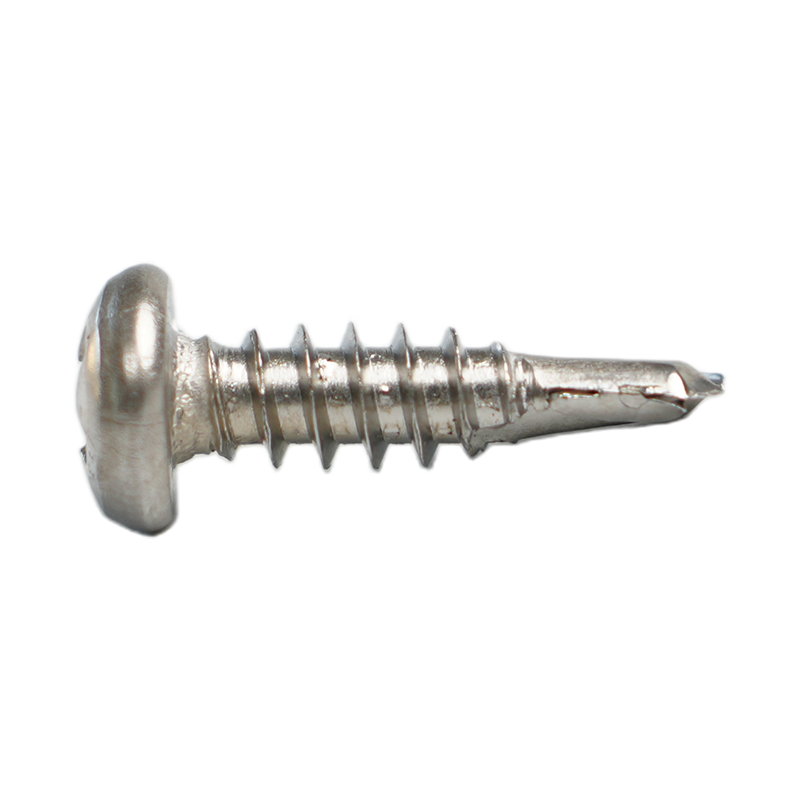 สกรูเจาะตัวเองหัวกระทะ 304 เหมาะสำหรับใช้ในสภาพแวดล้อมที่มีฤทธิ์กัดกร่อน เช่น ริมทะเล สกรูนั้นไม่สึกกร่อนง่าย แต่เนื่องจาก 304 ไม่มีความแข็งแรง จึงอาจต้องเจาะรูล่วงหน้าล่วงหน้า