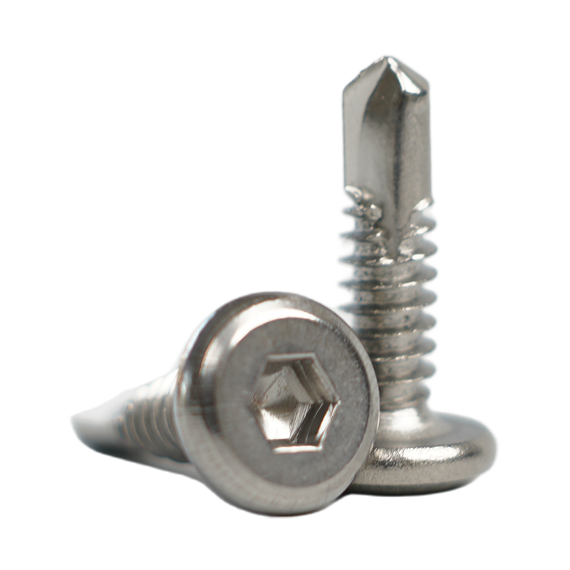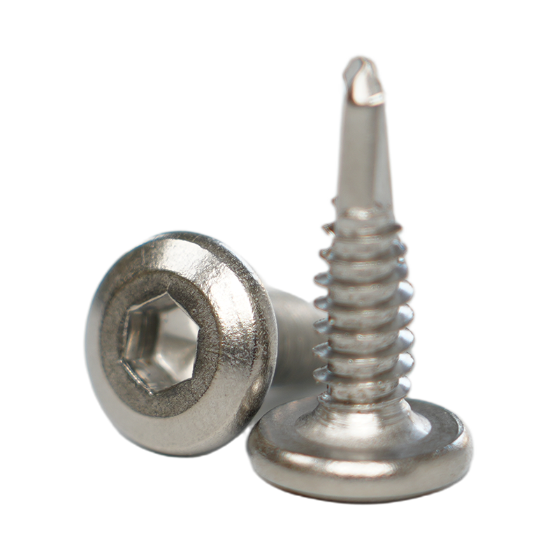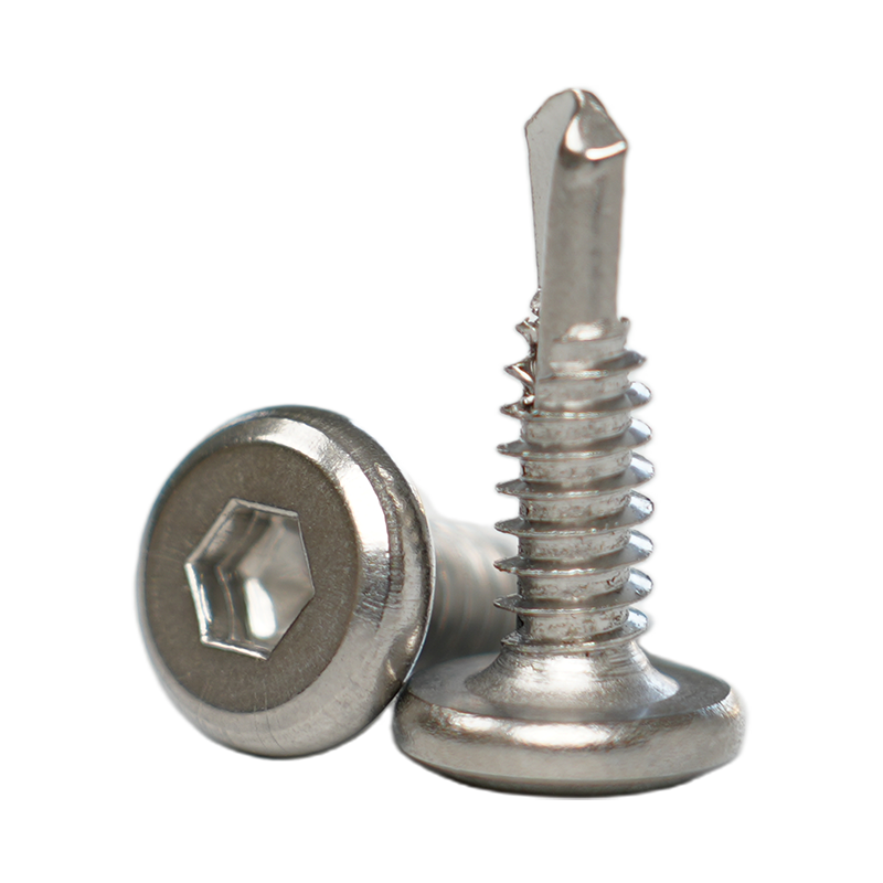 การออกแบบไดรฟ์ซ็อกเก็ตหกเหลี่ยมของสกรูเจาะตนเองซ็อกเก็ตหกเหลี่ยมหัวแบน SUS40 เหมาะสำหรับการใช้งานร่วมกับประแจหรือประแจหกเหลี่ยม ซึ่งให้แรงบิดเอาต์พุตสูงและเหมาะสำหรับการใช้งานที่ต้องใช้แรงขันมาก มักใช้ในการติดตั้งสถานที่ต่างๆ เช่น ราวบันไดและราวจับ